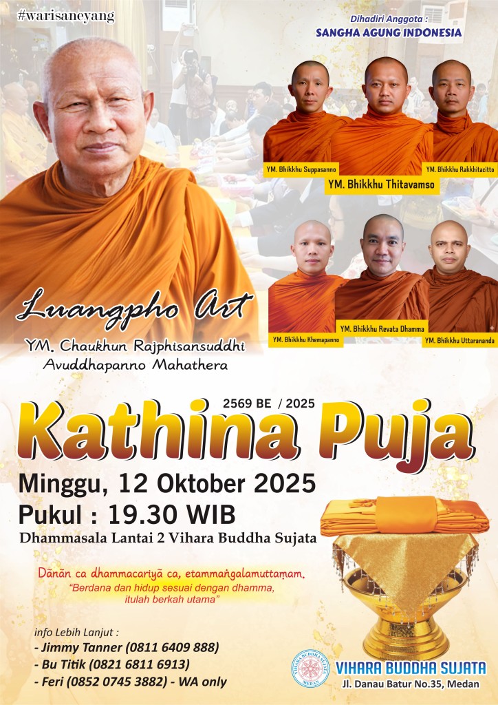 Sangha Dana Kathina Kala di Vihara Buddha Sujata pada Minggu, 12 Oktober 2025 pukul 19.30 WIB